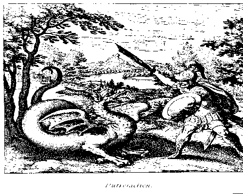 (Book of Lambspring 1599 etc.) : The legend says that a wild beast is in the forest, whose skin is of the blackest color. Comp.: In the german saga the hero Sigfried rides with his horse Grani to the Gnita-heath to kill the dragon Fafnir with his sword Gram(Balmung) |
